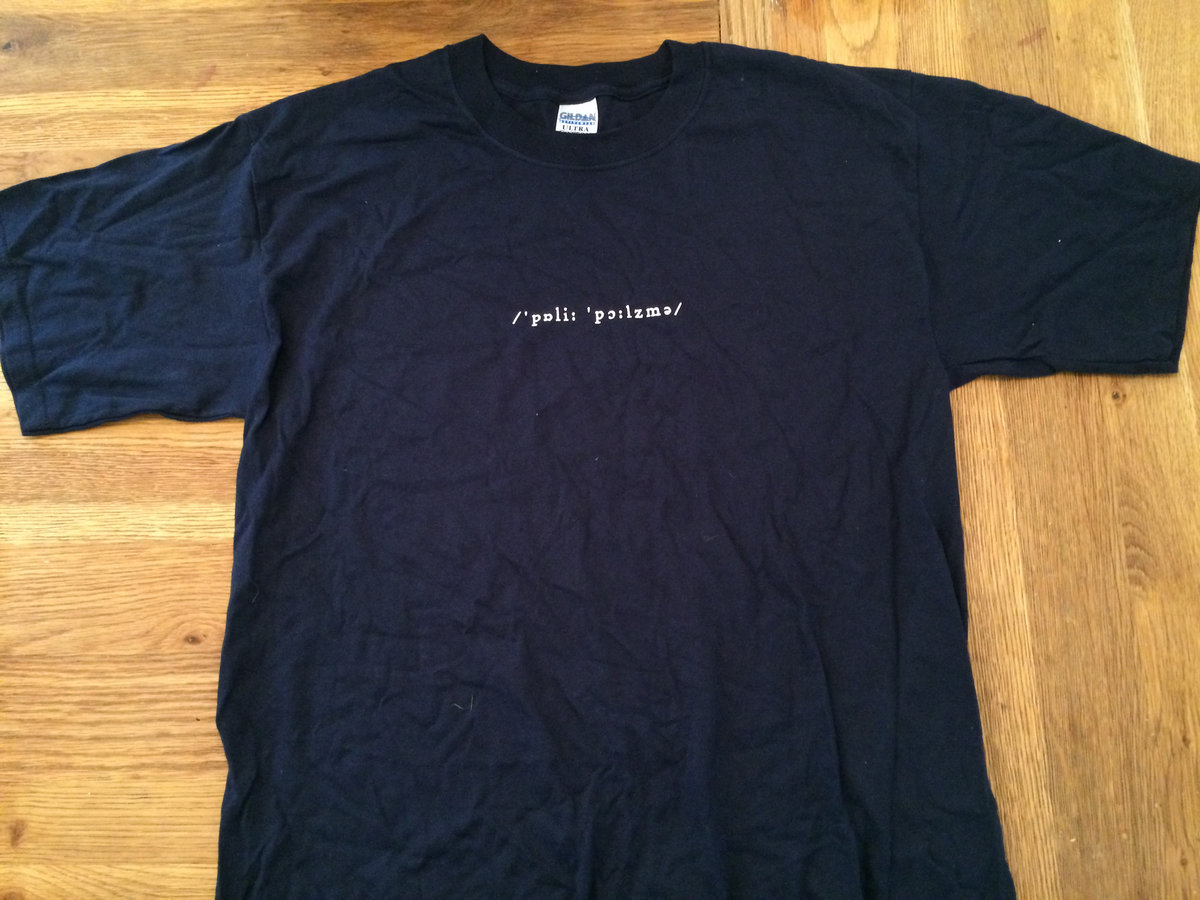 Large simple blue men's t-shirt with Polly Paulusma written in the phonetic alphabet.
